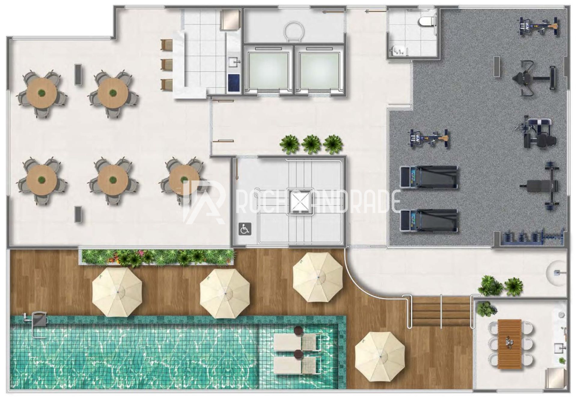 Piscina com deck seco e molhado