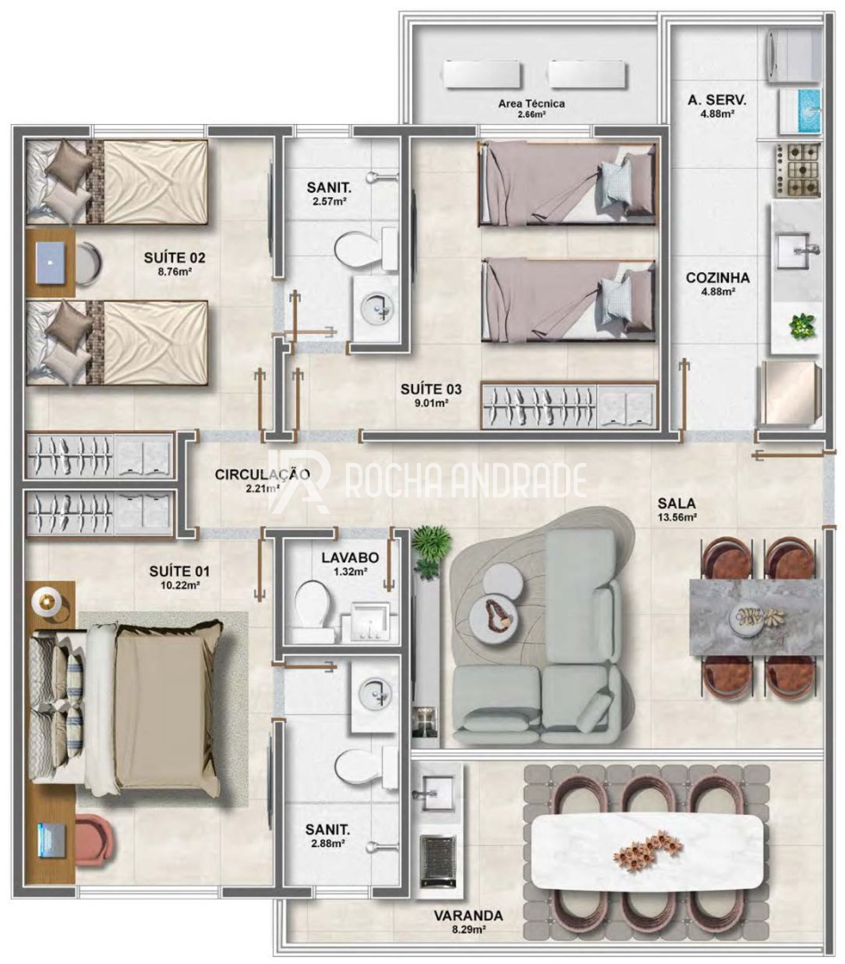 3 quartos com suíte