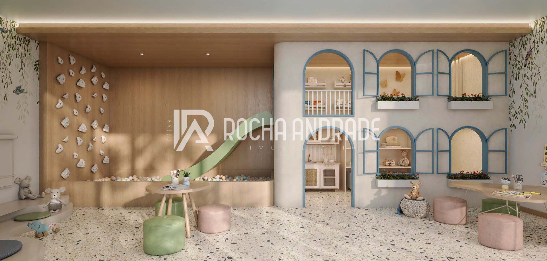 Parque infantil, brinquedoteca e salão de jogos