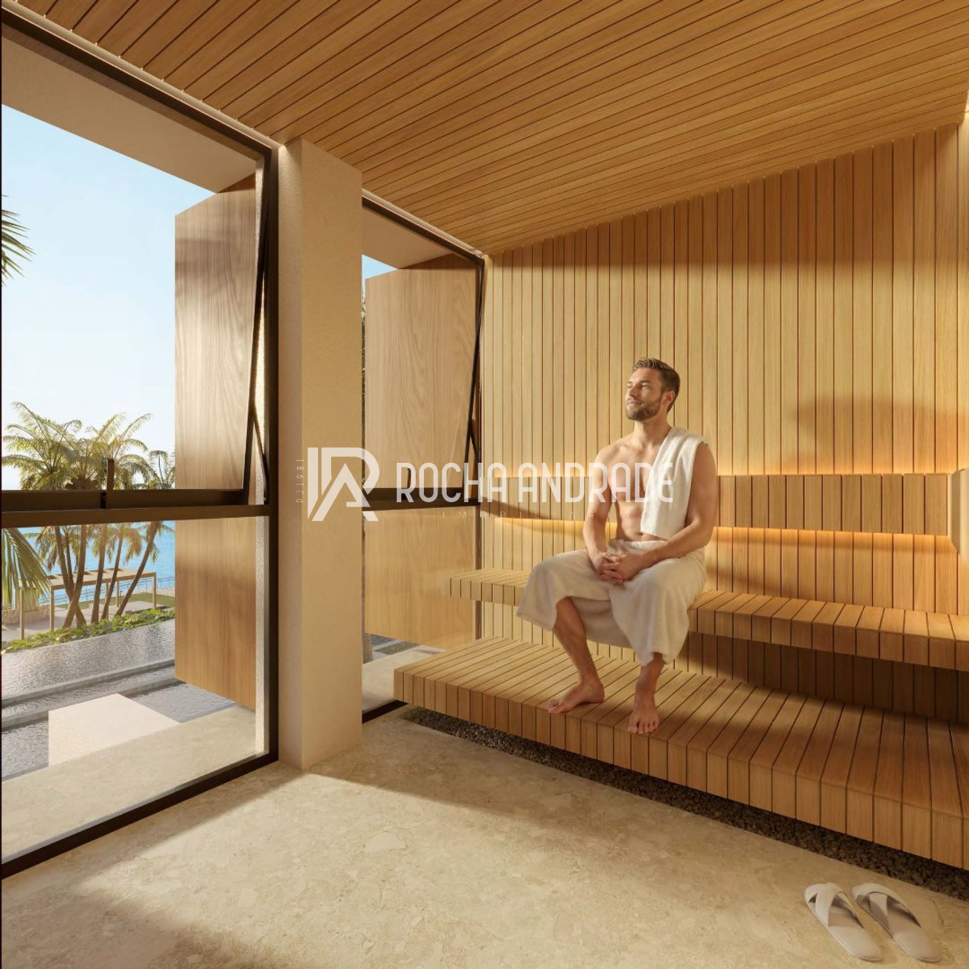 Inspirado na arquitetura da Costa Amalfitana, o projeto traz linhas elegantes, volumes escalonados, fachadas claras e integração total com o ambiente natural. O resultado é um cenário que valoriza a vista para o mar, a iluminação natural e a ventilação, criando uma atmosfera sofisticada e acolhedora.
