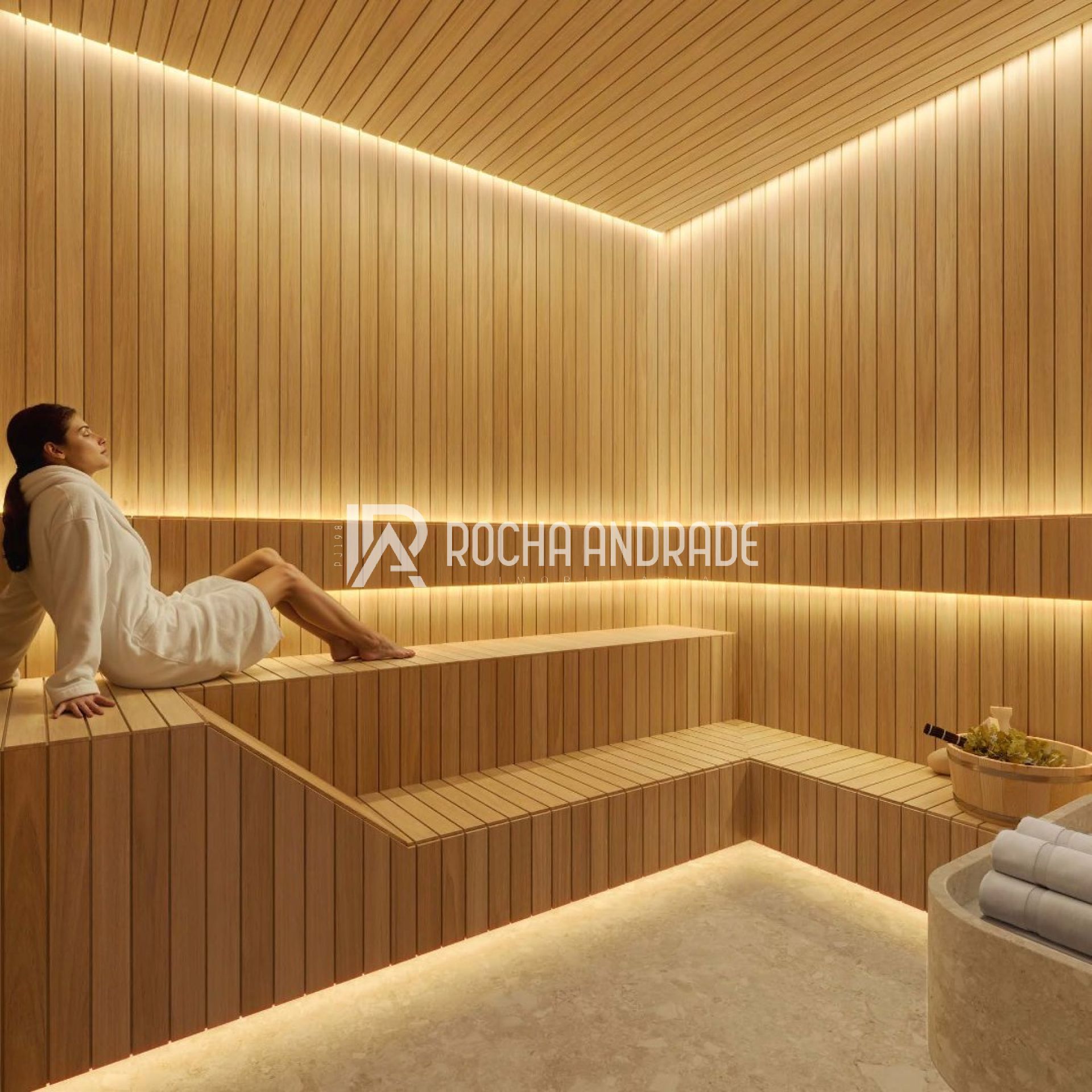Espaço wellness com spa, sauna, hidro e salas de massagem