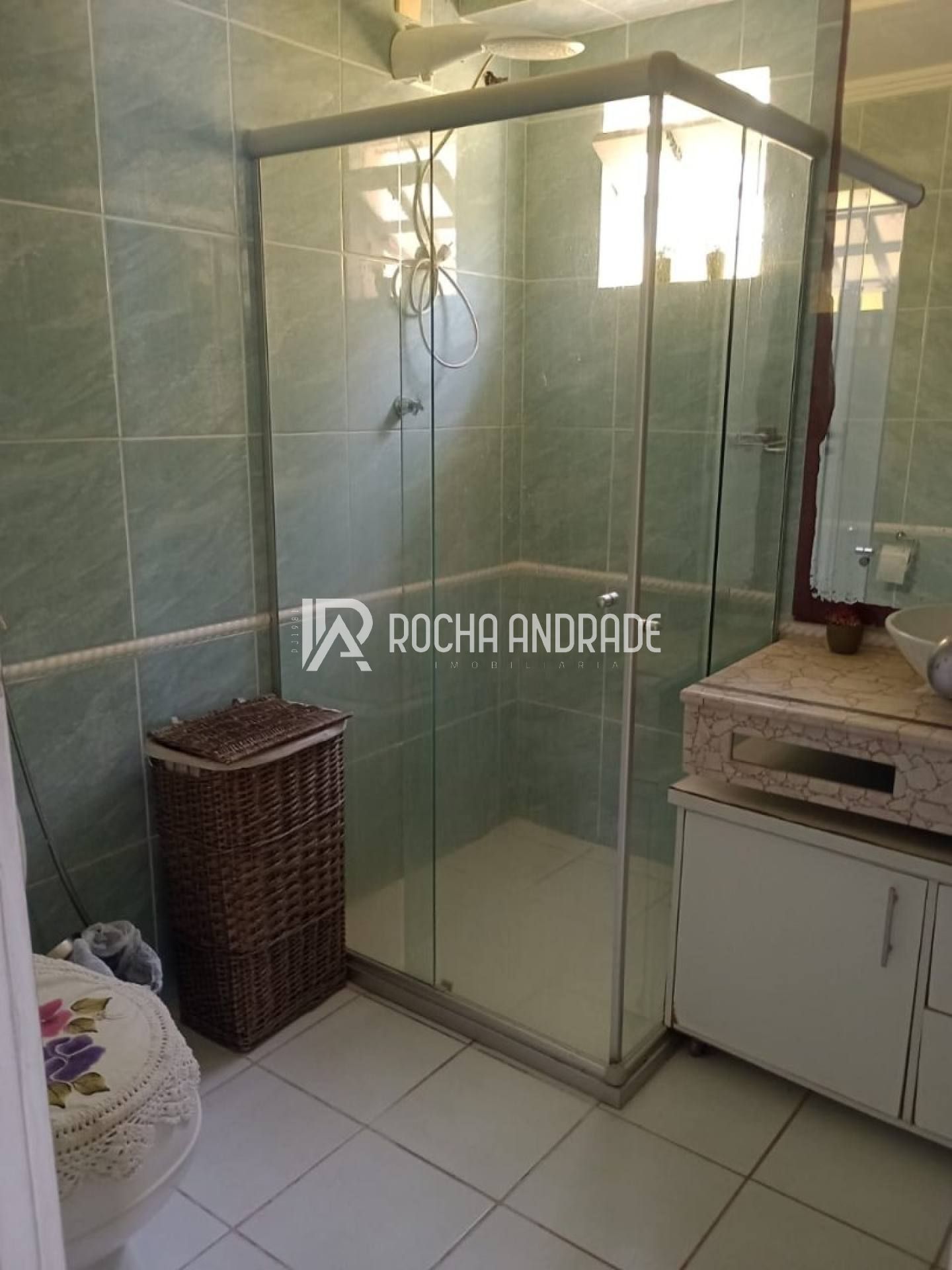 A casa conta com 3 quartos, sendo 2 suítes, além de 3 banheiros no total. Possui sala de estar e sala de jantar, cozinha, área de serviço e armários embutidos. O imóvel também dispõe de varanda, depósito e 2 vaga de garagem coberta e 2 vagas descobertas.
